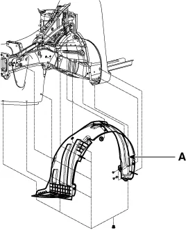 3.Remove the heater core cover (A) after loosening the mounting screws.
