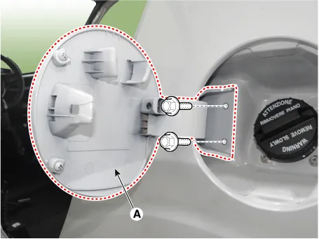 | 2. | Remove the fuel filler door housing (A) after loosening the mounting bolts.