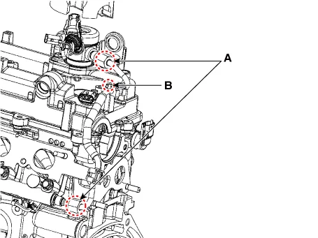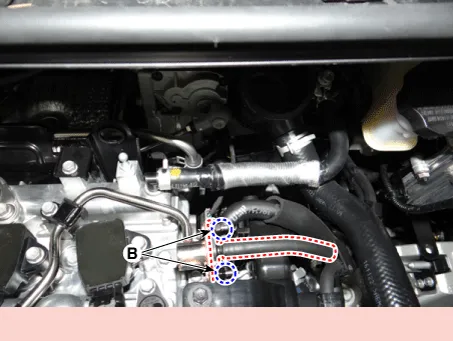 | 5. | Remove the engine control wiring mounting bolts (B). |