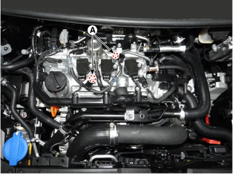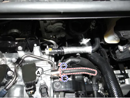| 8. | Remove the fuel line (A) after loosening the mounting bolts and bracket.