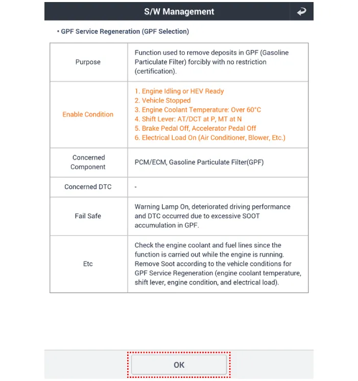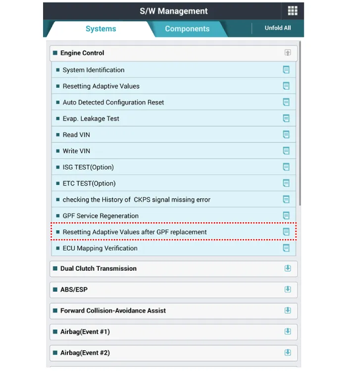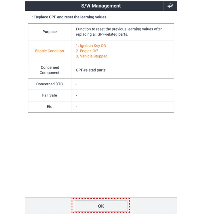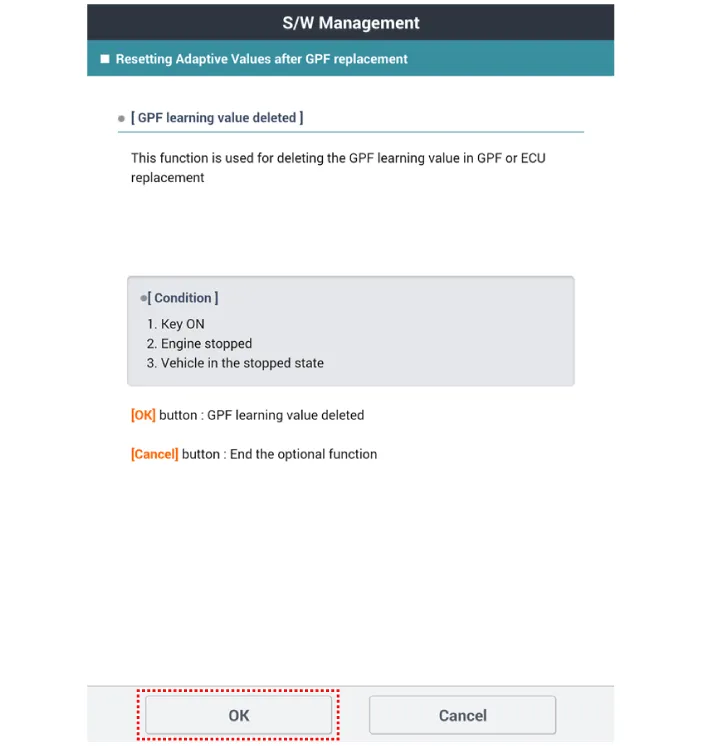 | 8. | Select "Resetting Adaptive Values after GPF replacement".