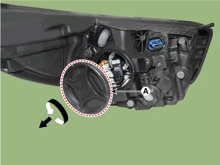 | 5. | Remove the headlamp high/low beam bulb (A) from the headlamp assembly after turning in the counterclockwise direction.