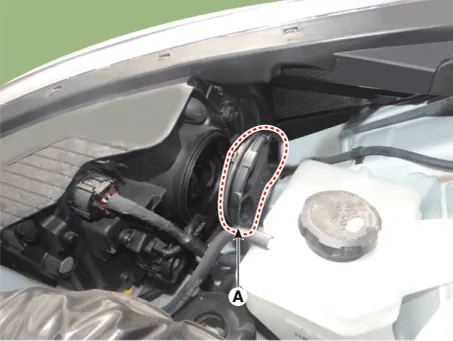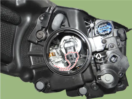 | 4. | Disconnect the headlamp high/low beam bulb connector (A).