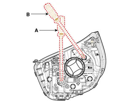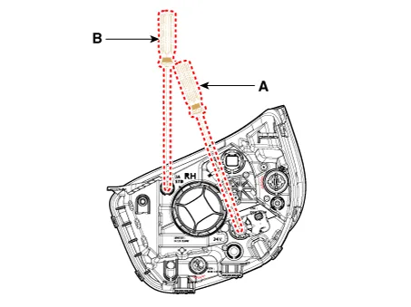 | 2. | Remove the bulb socket (A) and bulb (B) from the headlamp assembly.