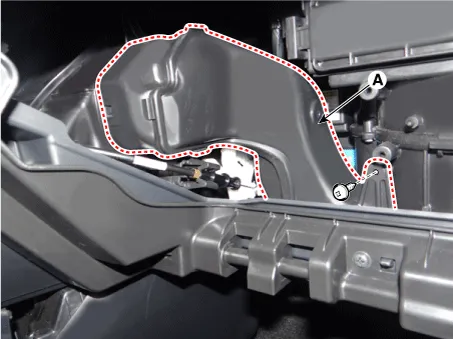| 4. | Remove the driver's side shower duct (A) after loosening the screw.