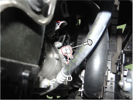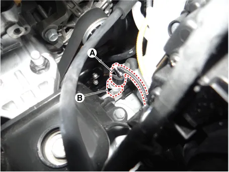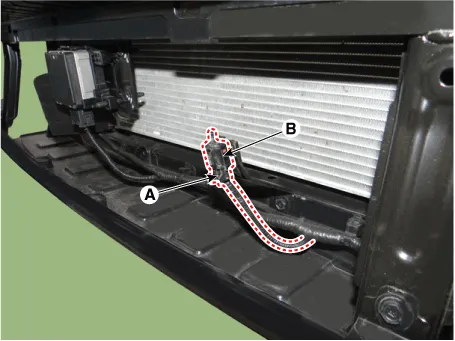Disconnect the connector (A) and then remove the ambient temperature sensor (B).