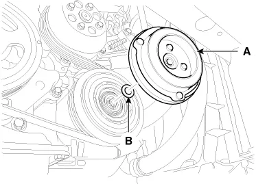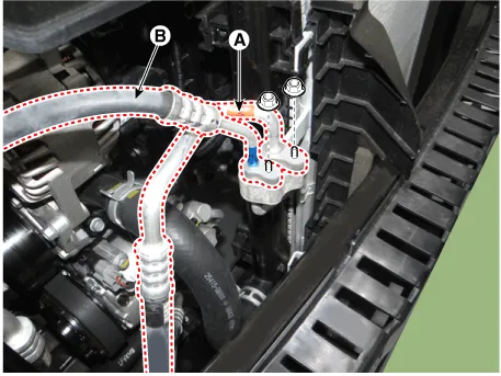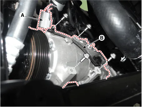 Remove the A/C pressure transducer (B).