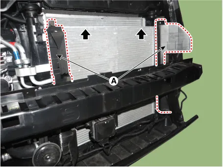 Be careful not to damage the radiator and condenser fins when installing the condenser.