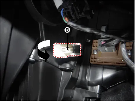 Remove the evaporator temperature sensor (B), by pulling it after rorating 90° in a counter clock wise direction.