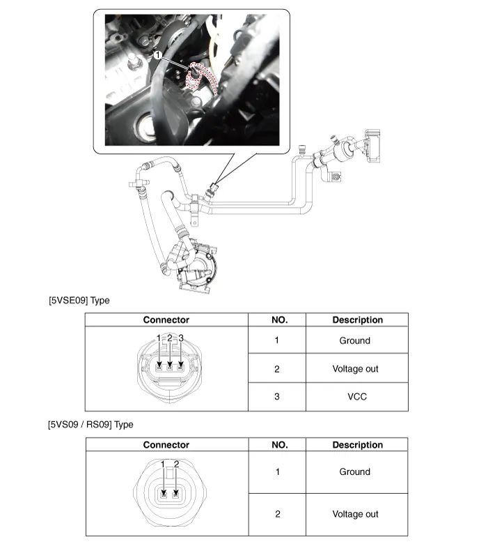 Measure the pressure of high pressure line by measuring voltage output between NO.1 and NO.2 terminals.