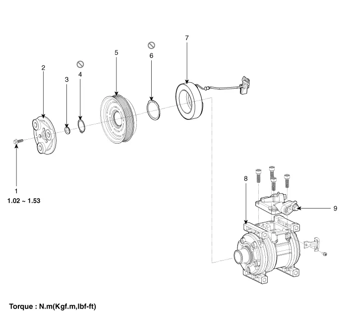 9.8 - 14.7 N·m (1.0 - 1.5 kgf·m, 7.2 - 10.8 lb·ft)