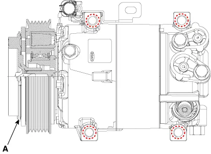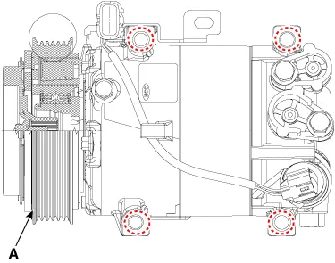 Disconnect the A/C pressure transducer connector (A).