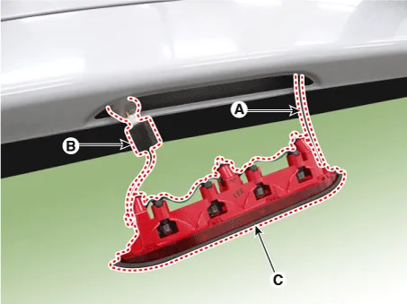 | 5. | Remove the high mounted stop lamp (C).