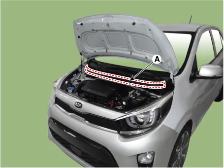 | 1. | Remove the hood weatherstrip (A).
