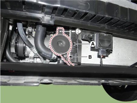 | 3. | Remove the horn (A) after disconnecting the horn connector (B) and loosening the mounting the bolt.