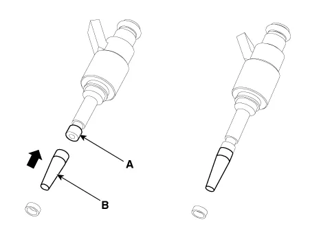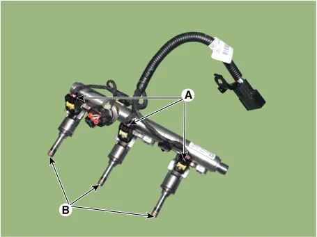 | 4. | Remove the connector (A), and then separate the injector (B) from the delivery pipe.