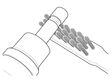 | 2. | Before the assembly of the sealing ring, the groove must be cleaned by using a clean cloth. By using a brass-wire brush, carefully remove all caulking from the injector sealing surface.