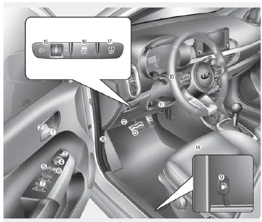 9. Fuel filler lid release lever
