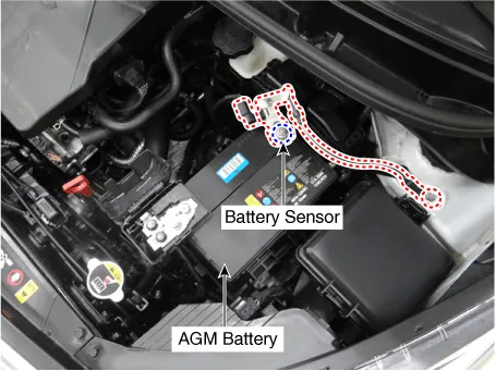 | 1 . Battery sensor 3 . AGM battery | 2 . Brake Booster Vacuum Pressure Sensor (BBVPS) |