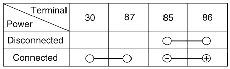 supplying power to between No. 85 and 86 power relay terminals, check