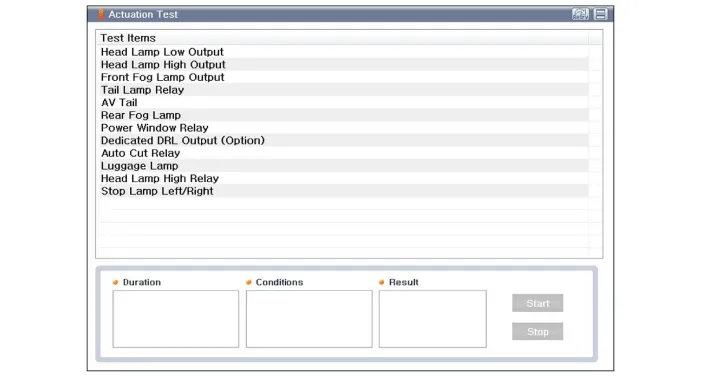 | 4. | To perform functional test on Interior Junction Block outputs, select "Actuation Test"