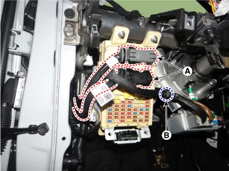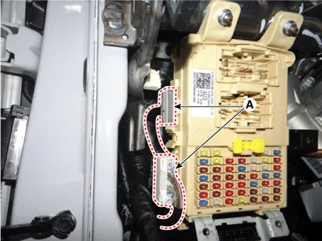 | 3. | Disconnect the connectors (A) from the fuse side of the interior junction block. |
