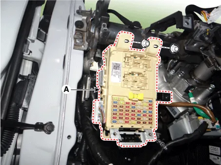 | 6. | Remove the interior junction block (A) after loosening the mounting nuts.