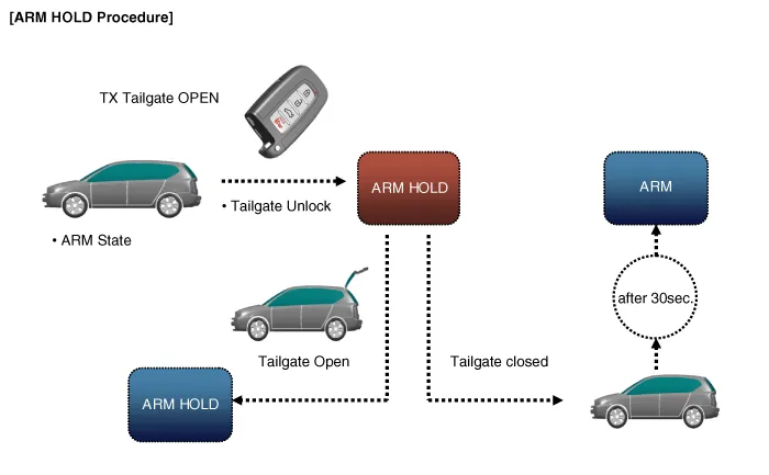 | | 1) | "ARM HOLD" mode is similar to the existing tailgate alarm hold mode. |