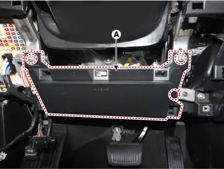 | 3. | Remove the knee airbag (A) after loosening the mounting nuts.