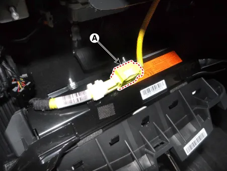 | 4. | Disconnect the knee airbag connector (A).