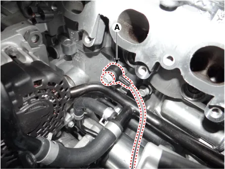 | 4. | Remove the knock sensor (A) after loosening the mounting bolt.