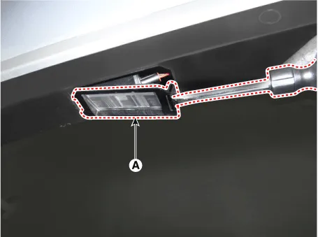 | 2. | Remove the license lamp assembly (A) after pressing the locking pin.