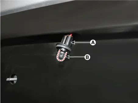 | 4. | Remove the license lamp bulb (B) after removing the license lamp socket (A).