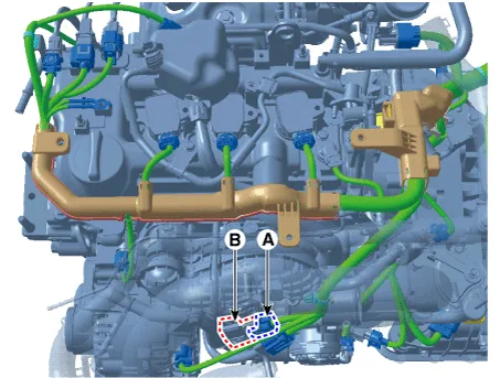 | 3. | Remove the sensor (B) from the Intake manifold by loosening the mounting screws.
