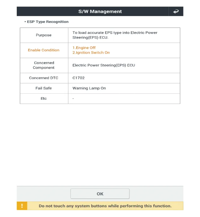 | 3. | Select the "EPS Type Recognition" on KDS screen, then select OK. |
