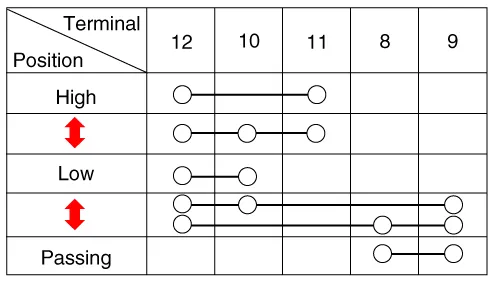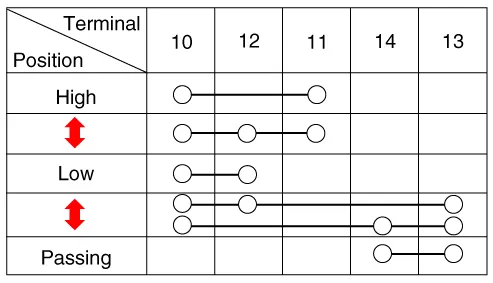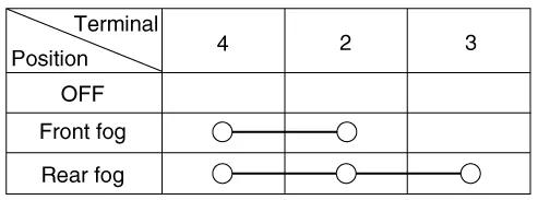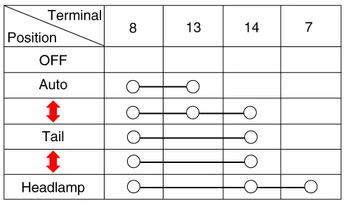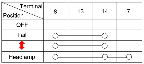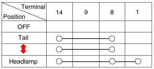 | 1. | Check for continuity between the terminals in each switch position as shown below.