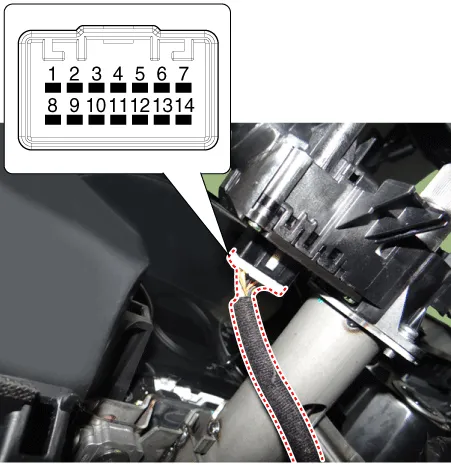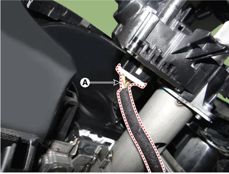 | 6. | Disconnect the turn signal lamp switch / dimmer & passing switch connector (A).