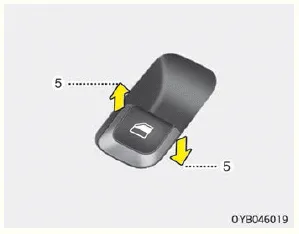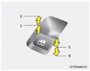 To open or close a window, press down or pull up the front portion of the corresponding switch to the first detent position (5).