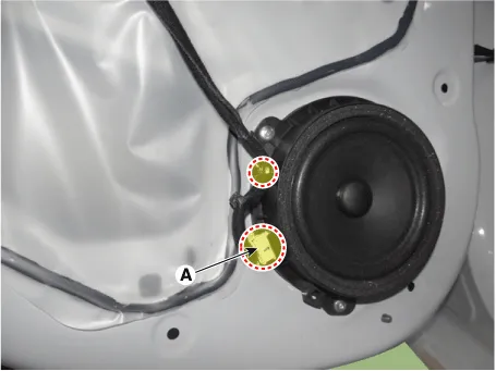 | 5. | Disconnect the front door speaker connector (A), and then remove the wiring mounting clips.
