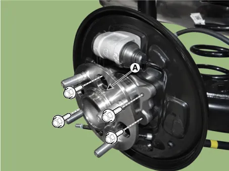 | 4. | Loosen the bolts and then remove the hub (A) from the torsion beam axle.