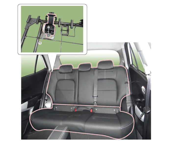 Components and components location Component Location 1. Rear seat belt retractor Repair procedures Replacement When installing the belt, be careful not to damage the retractor.
