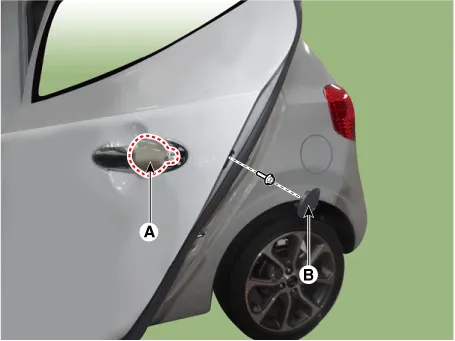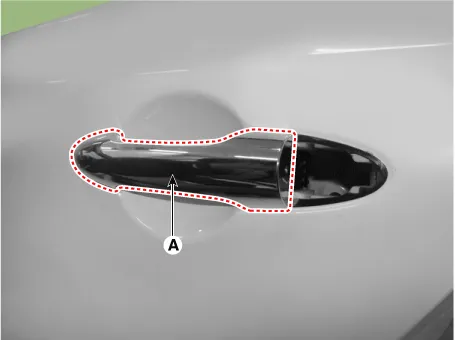 | 2. | Remove the rear door outside handle (A) by sliding it rearward.