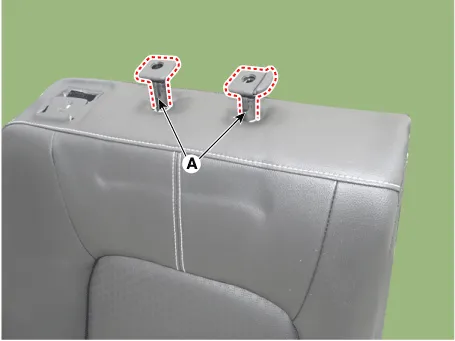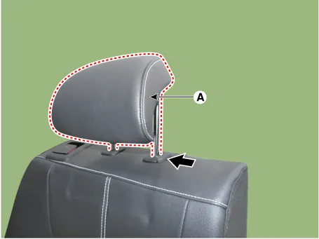 | 2. | Push the lock pin and remove the rear seat headrest (A).