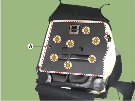 | 10. | Detach the rear seat back cover side mounting hook(A).