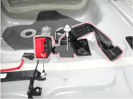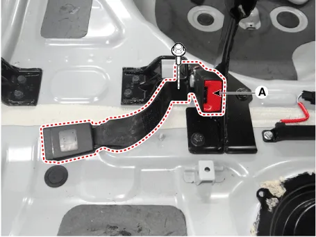 | 2. | Remove the rear seat belt buckle (A) after loosening the mounting bolt.