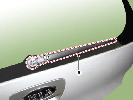 | 2. | Remove the rear wiper arm & blade (A) after loosening the mounting nut.
