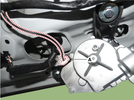 | 4. | Disconnect the rear wiper motor connector (A).
