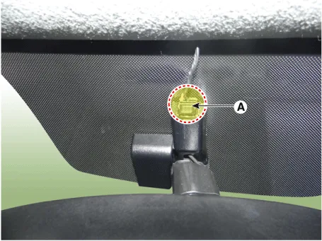 | 11. | Disconnect the roof trim main connector (A) and the mounting clips in the front pillar.