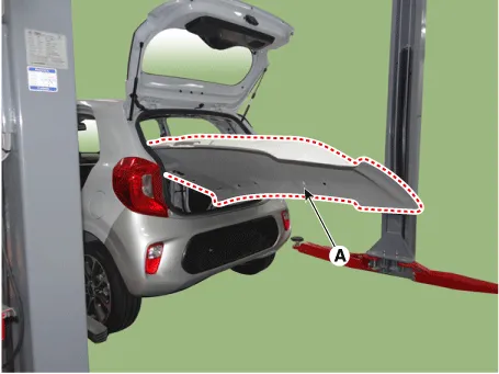 | 13. | Remove the roof trim assembly (A) from the vehicle through the tailgate.