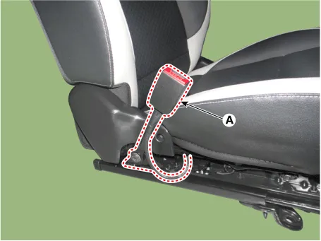 | 3. | Loosen the mouting bolt and then remove the seat belt buckle switch (A).